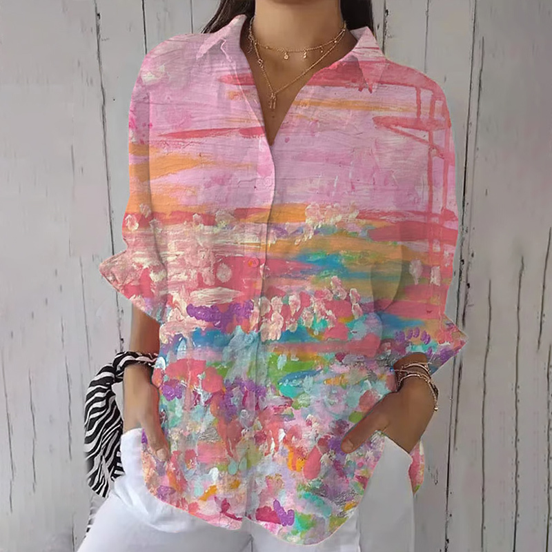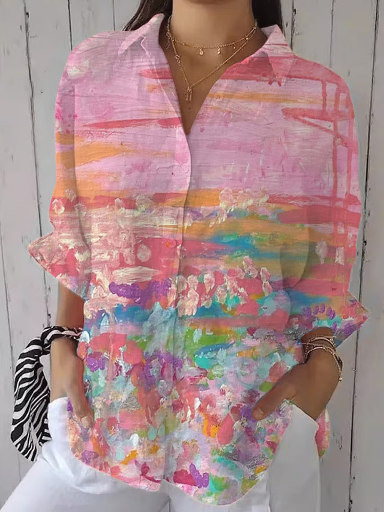 Women's Breast Cancer Awareness Print Cotton And Linen Shirt – lolonb