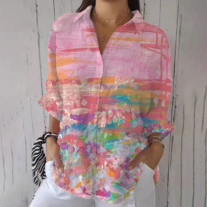 Women's Breast Cancer Awareness Print Cotton And Linen Shirt