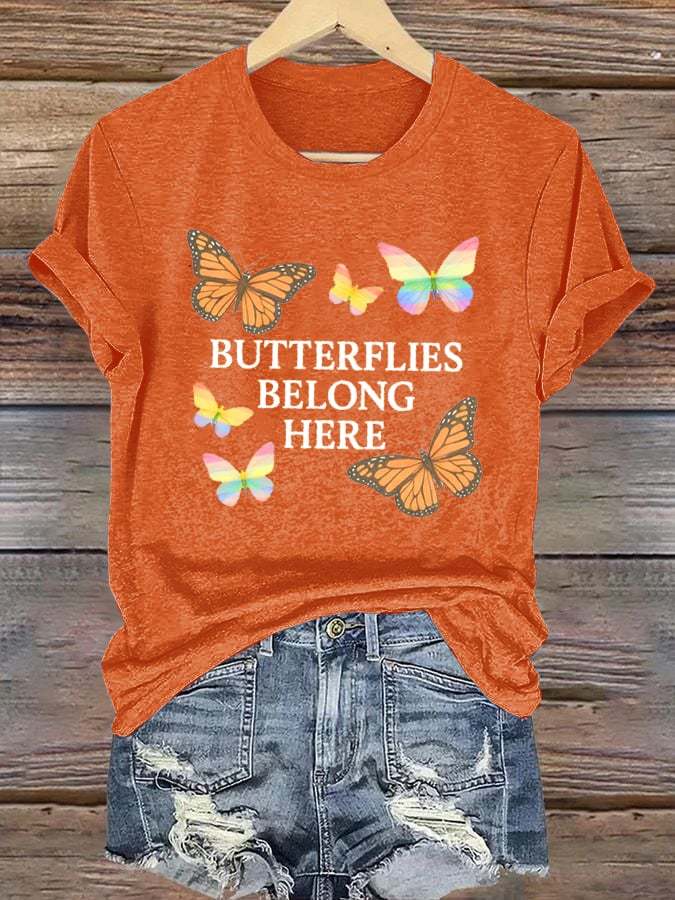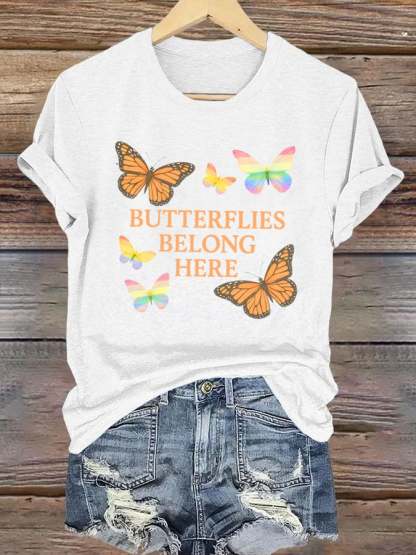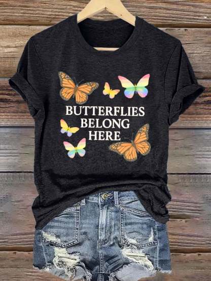 Women's Butterflies Belong Here Printed T-Shirts