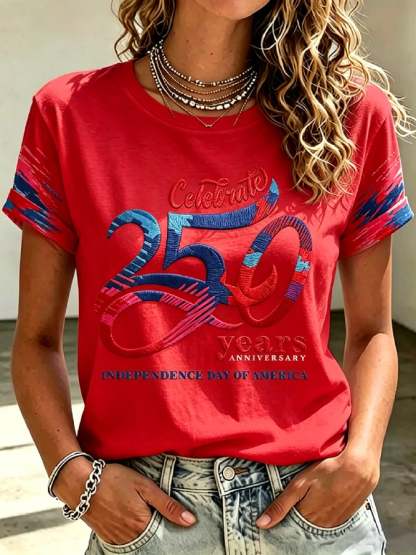Women's Casual American 250th Anniversary Printed Short-Sleeve T-Shirt
