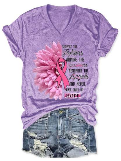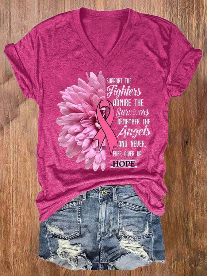 Women's Casual Breast Cancer Awareness Print Short Sleeve T-Shirt
