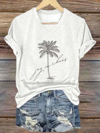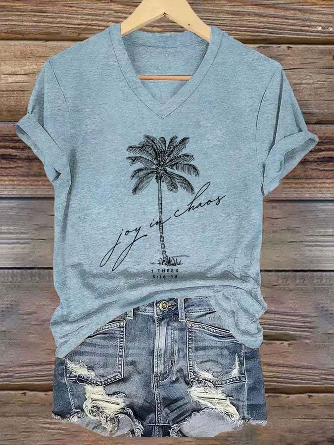 Women's Casual Christian Faith Bible Verse Printed V-Neck Short Sleeve T-Shirt