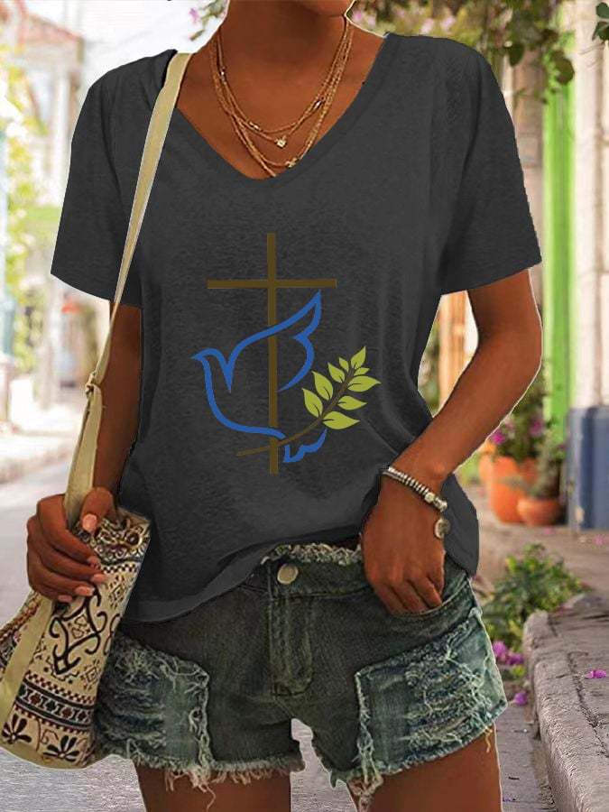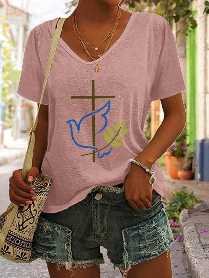 Women's Casual Christian Faith Graphic Print V-Neck Short Sleeve T-Shirt