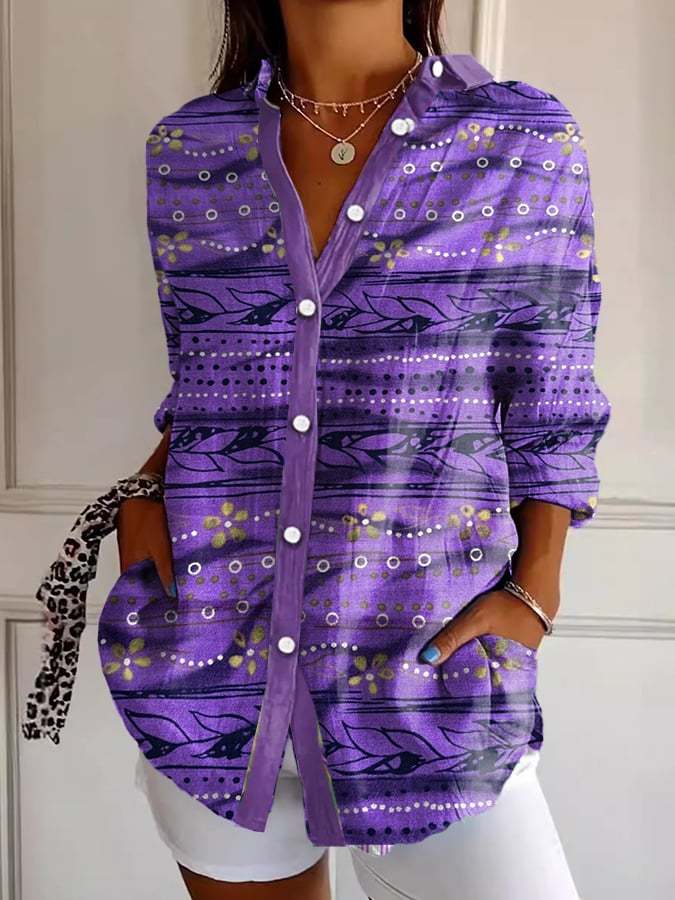 Women's Casual Cotton and Linen Purple Gradient Shirt
