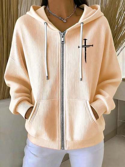 Women's Casual Faith Fashion Textured Hoodie Jacket