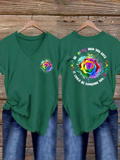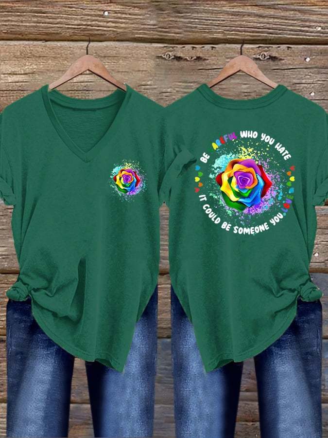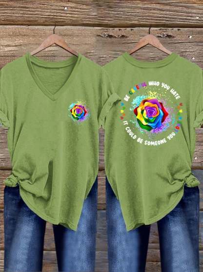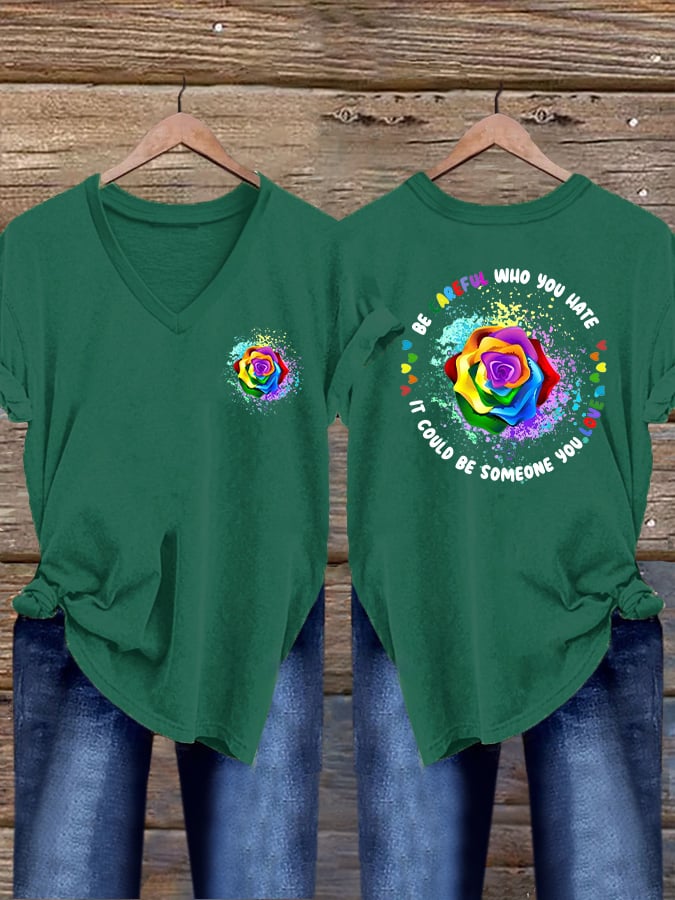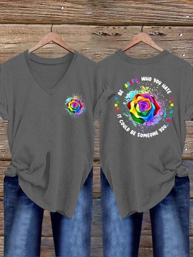Women's Casual Fashion Rainbow Rose Be Careful Who You Hate, It Could Be Someone You Love T-Shirt