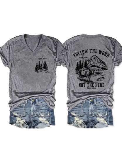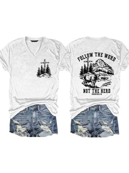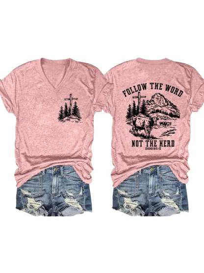 Women'S Casual Follow The Word Not The Herd Isaiah 8:11-13 Bible Verse Short Sleeve V Neck T-Shirt