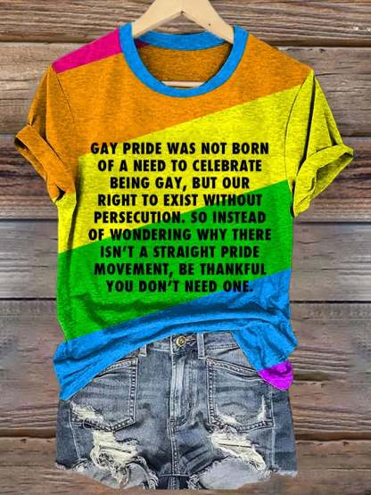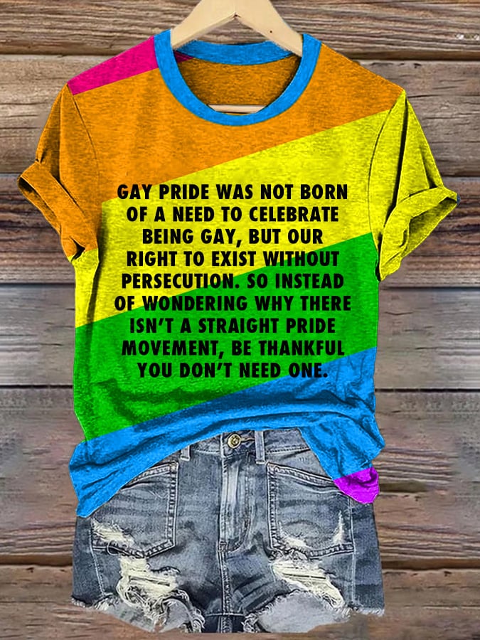 Women's Casual Gay Pride Month Rainbow Graphic Printed Crew Neck Short Sleeve T-Shirt