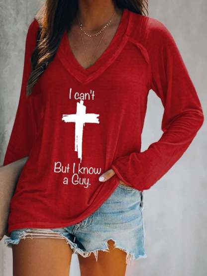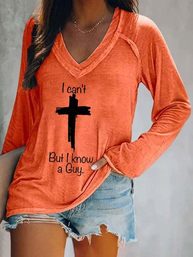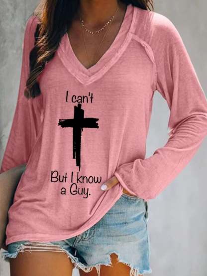 Women's Casual I Can'T But I Know A Guy Print Long Sleeve T-Shirt