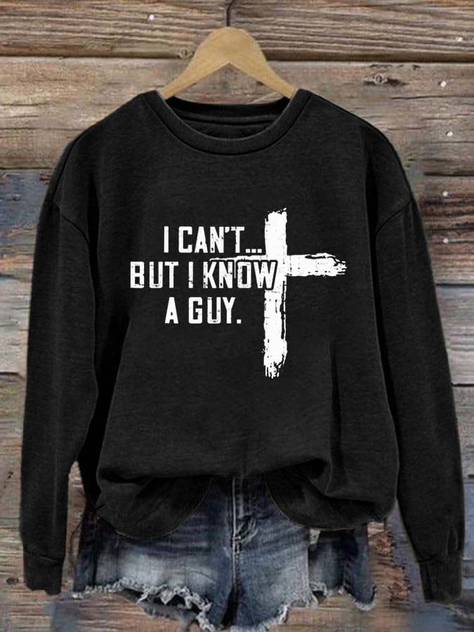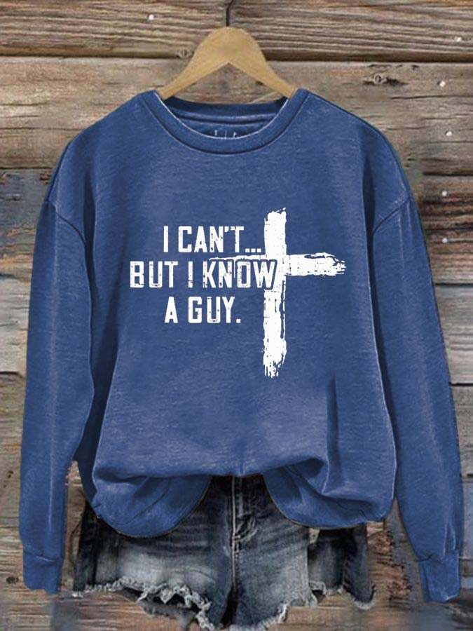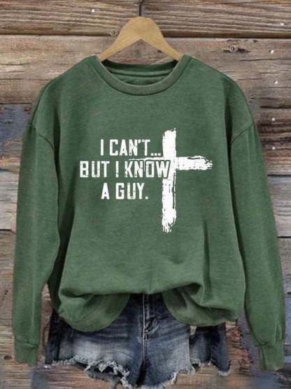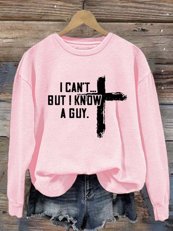 Women's Casual I Can'T But I Know A Guy Printed Long Sleeve Sweatshirt