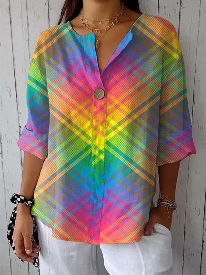 Women's Casual LGBT Rainbow Gradient Check Printed Shirt