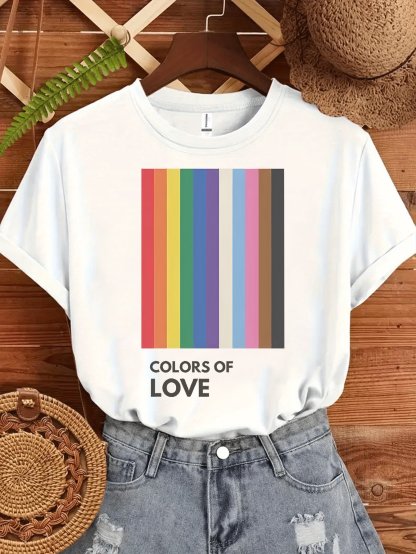 Women'S Casual LGBT Support Pride Month Color of Love Print Short Sleeve T-Shirt