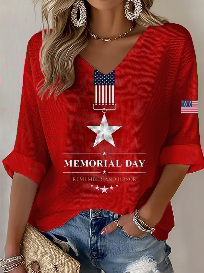 Women's Casual Memorial Day Printed Waffle Top