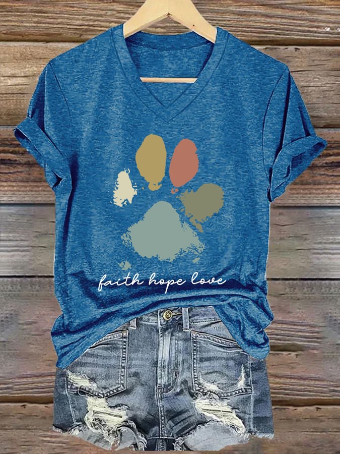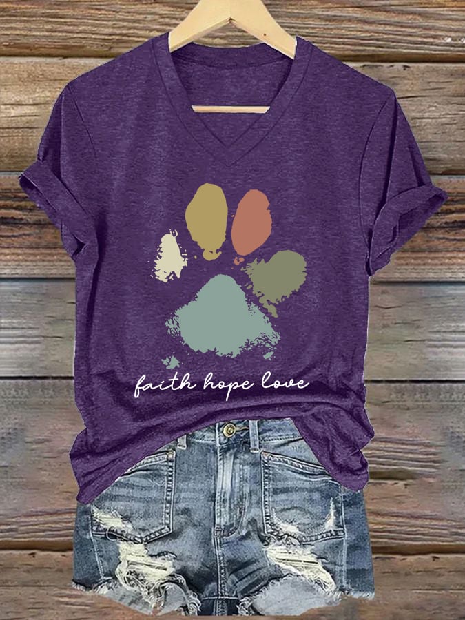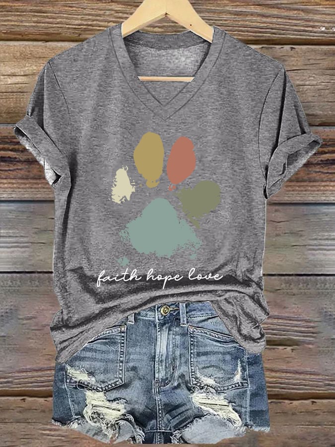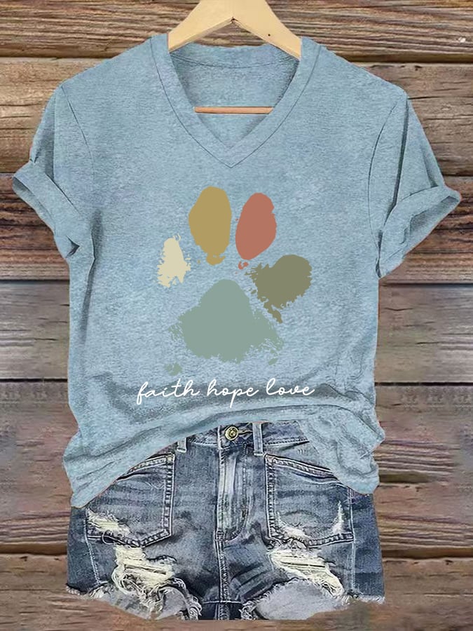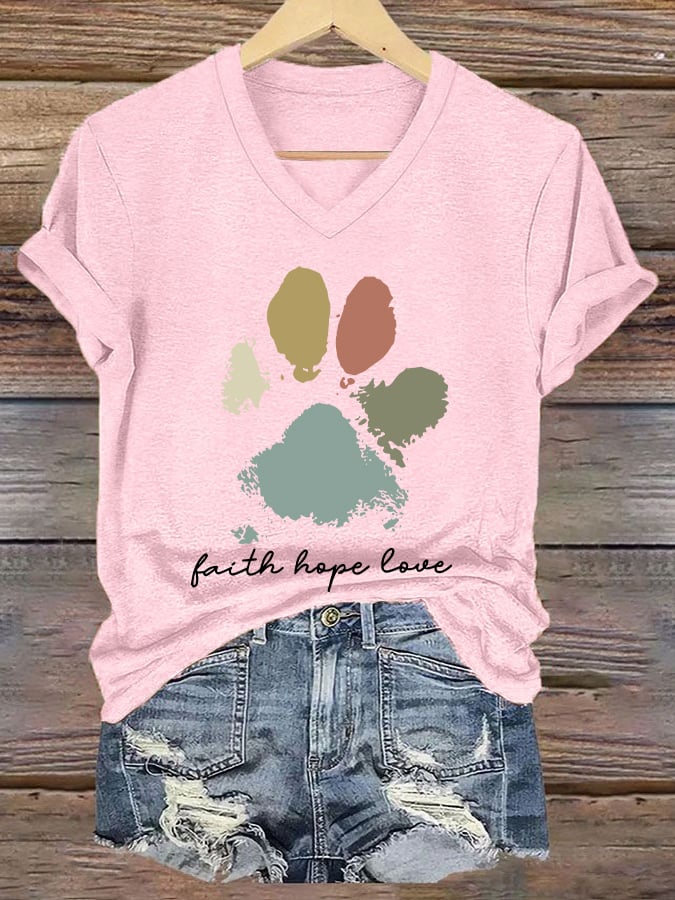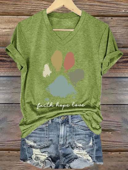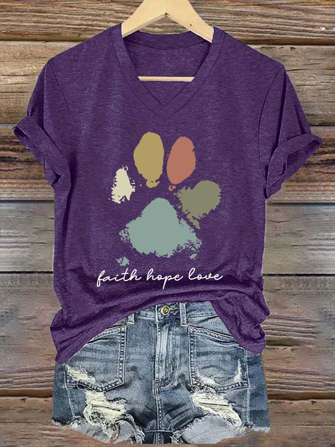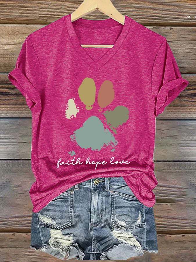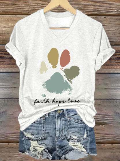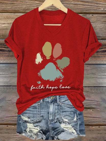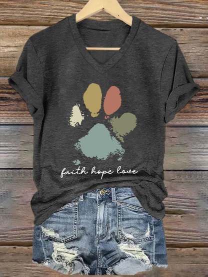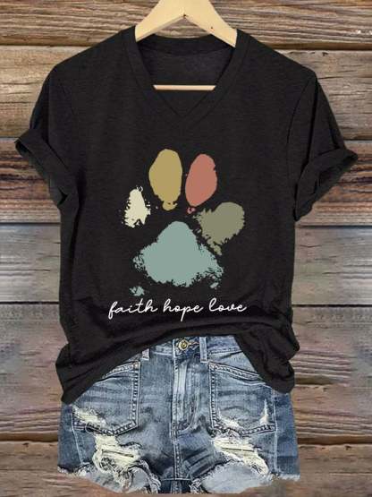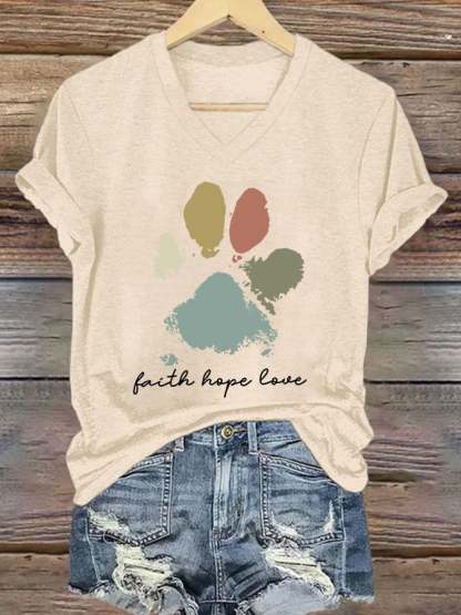 Women'S Casual Paw Faith Hope Love Graphic Print Short Sleeve T-Shirt