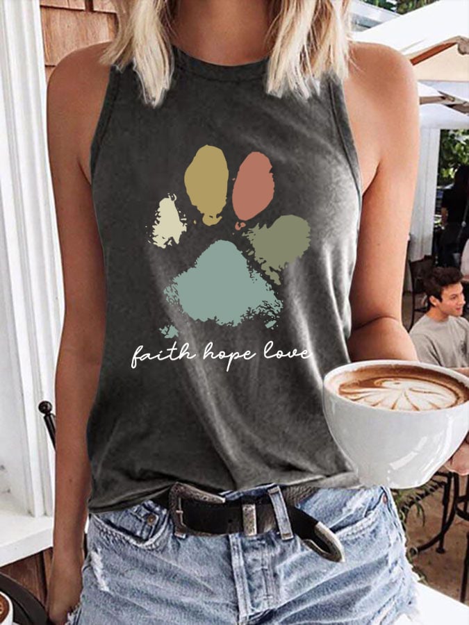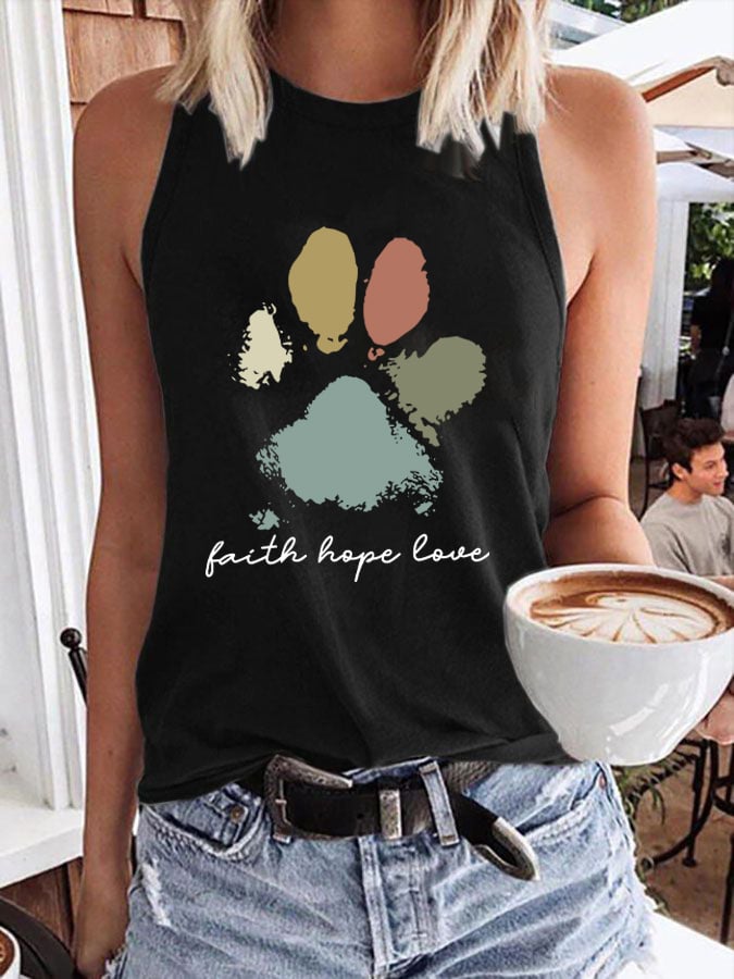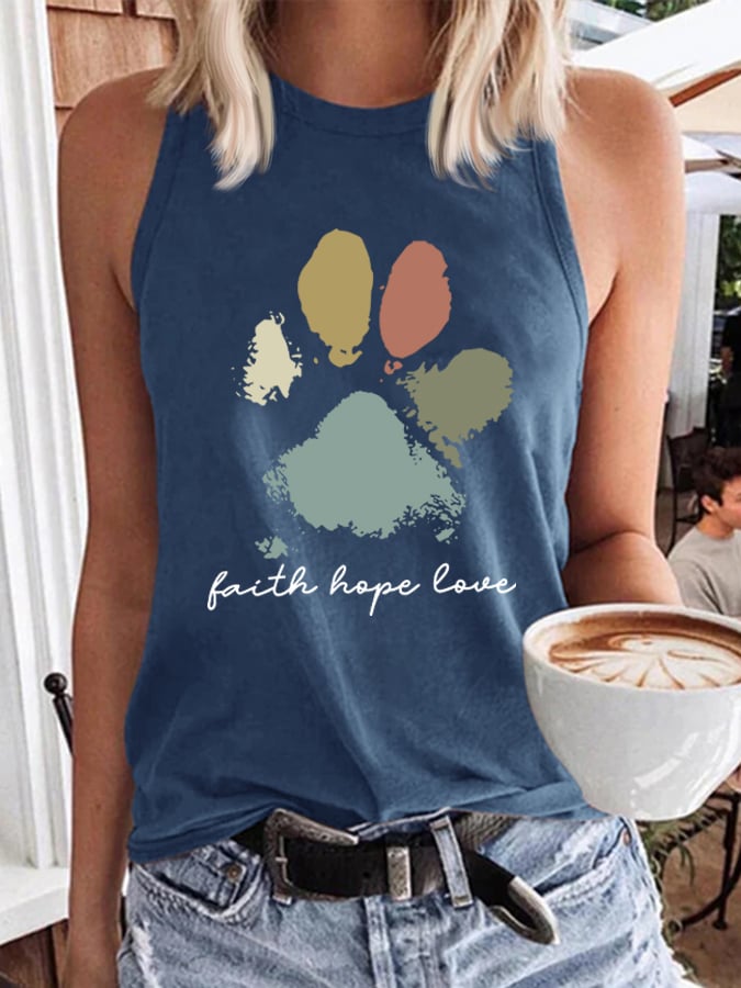 Women'S Casual Paw Faith Hope Love Graphic Print Tank Top