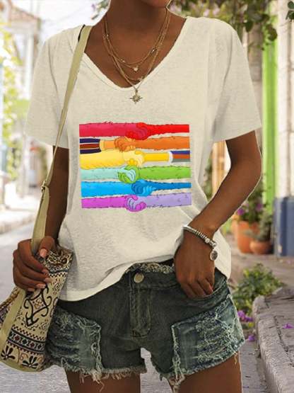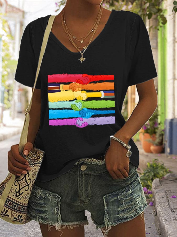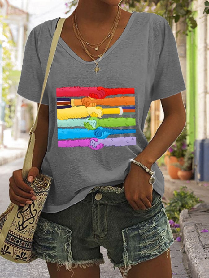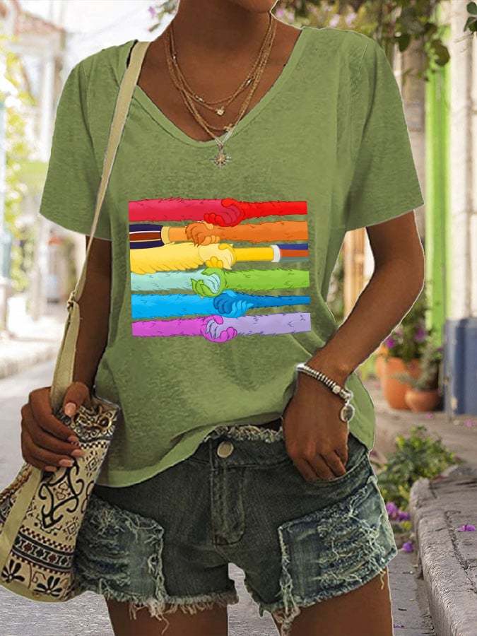 Women's Casual Pride Month Graphic Print V-Neck Short Sleeve T-Shirt