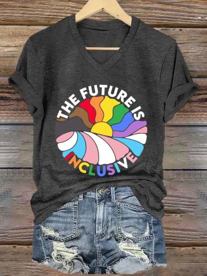 Women's Casual Pride Month Printed V-Neck Short Sleeve T-Shirt