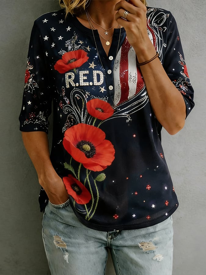 Women's Casual RED FRIDAY Printed Cotton Linen Floral Print Shirt