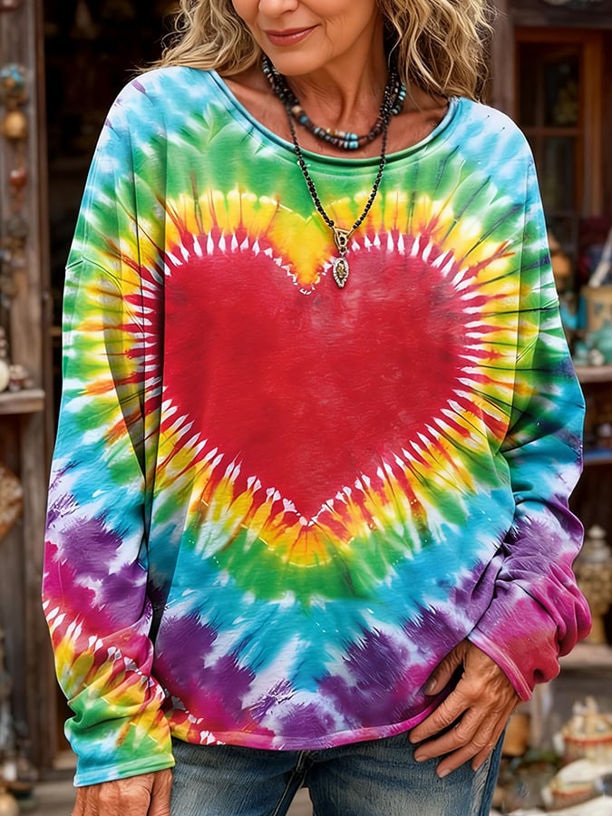 Women's Casual Retro Heart Tie-Dye Sweatshirt