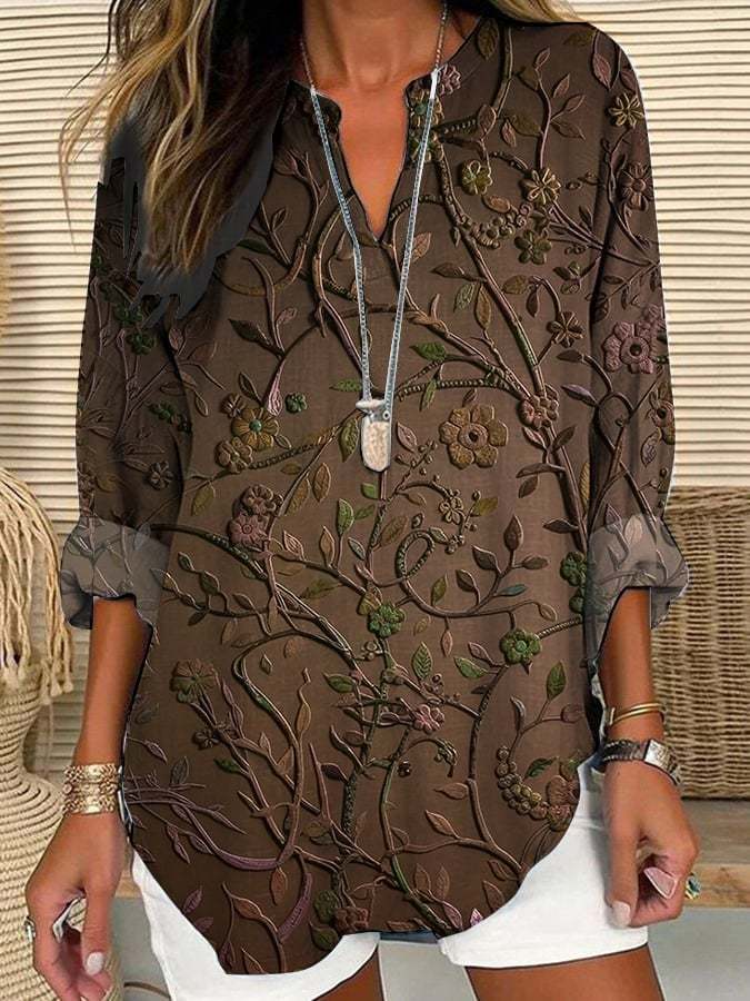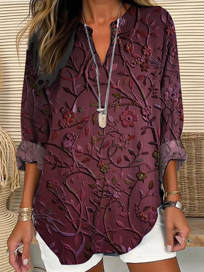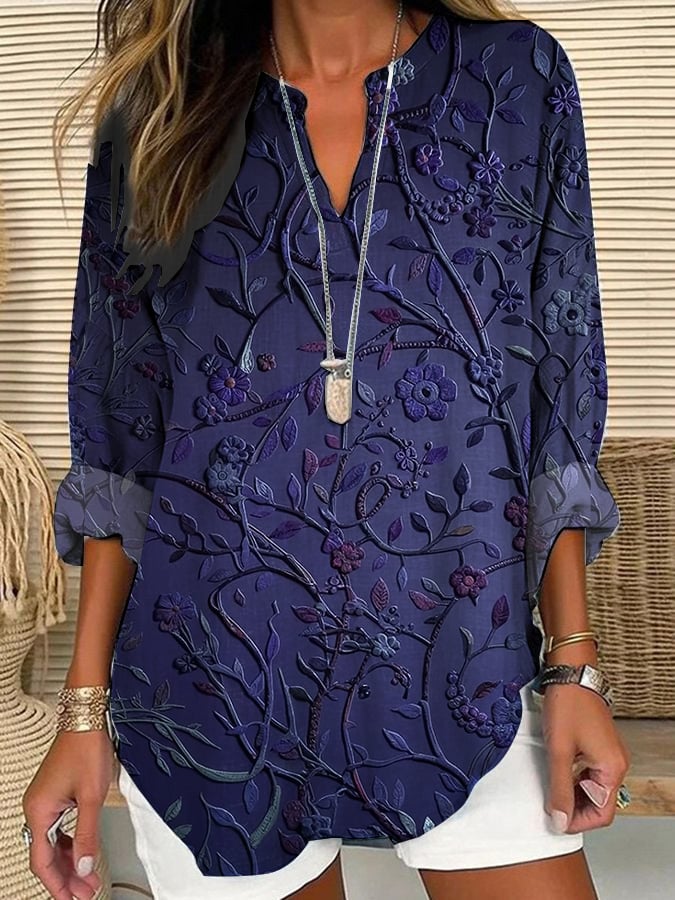 Women's Casual Retro Purple Art Cotton And Linen Shirt