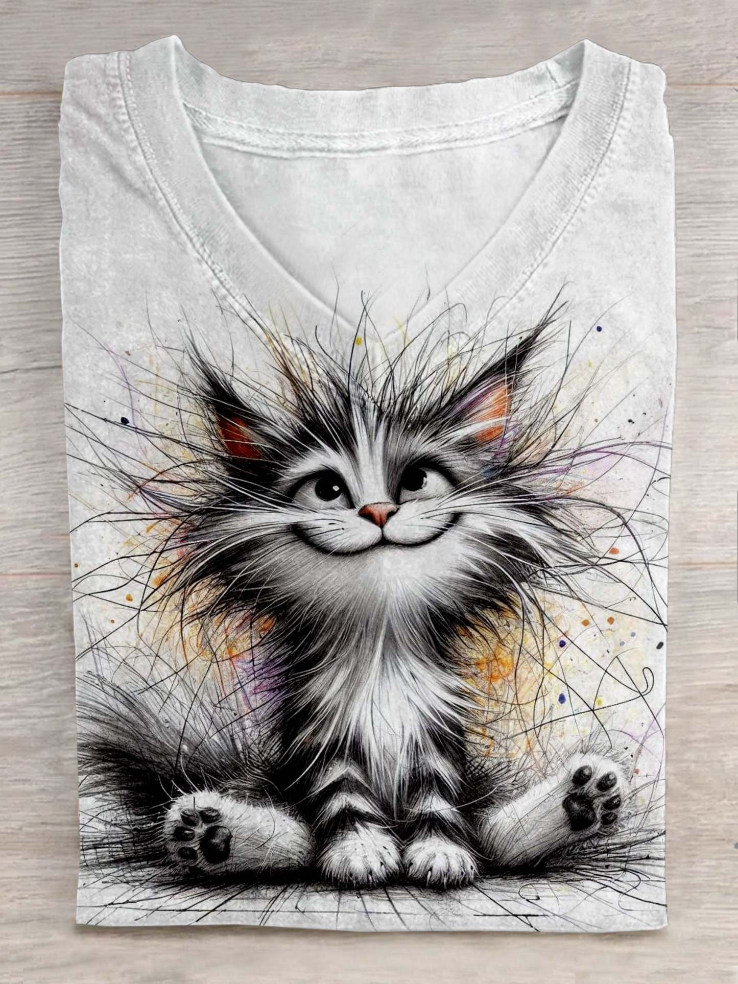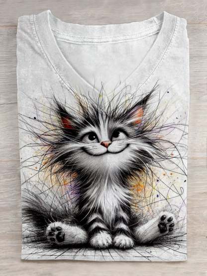 Women's Cat Art Print Casual T-shirt
