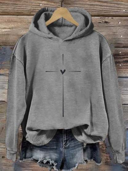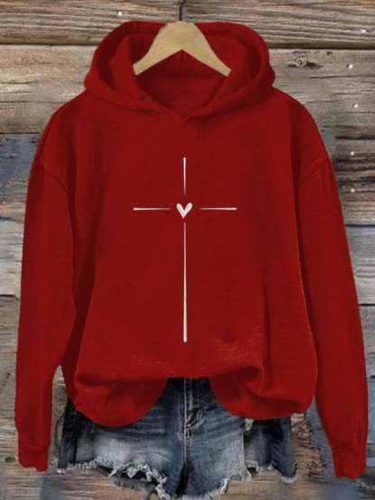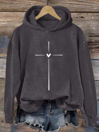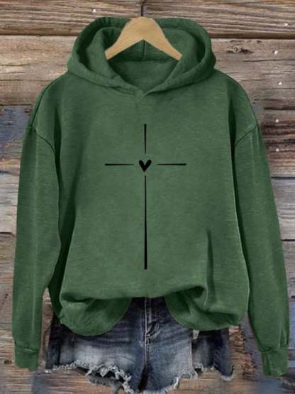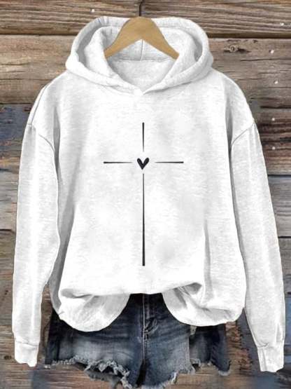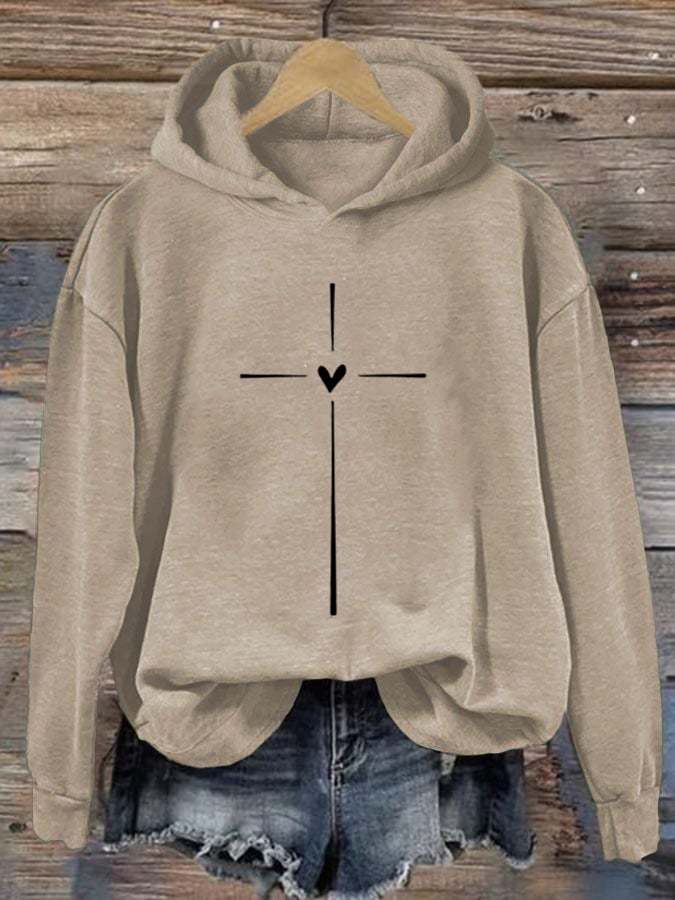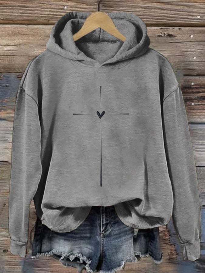 Women's Christian Cross Printed Long Sleeve Hoodie