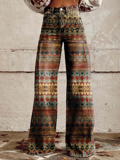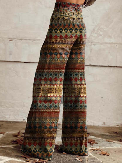 Women's Color Geometric Texture Print Casual Wide Leg Pants