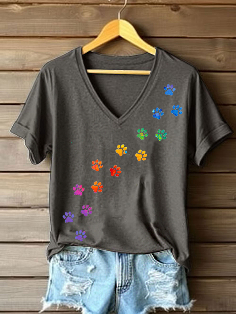 Women's colorful dog paw T-shirt