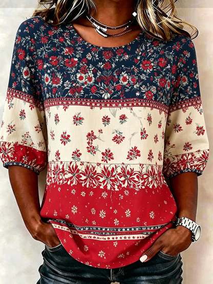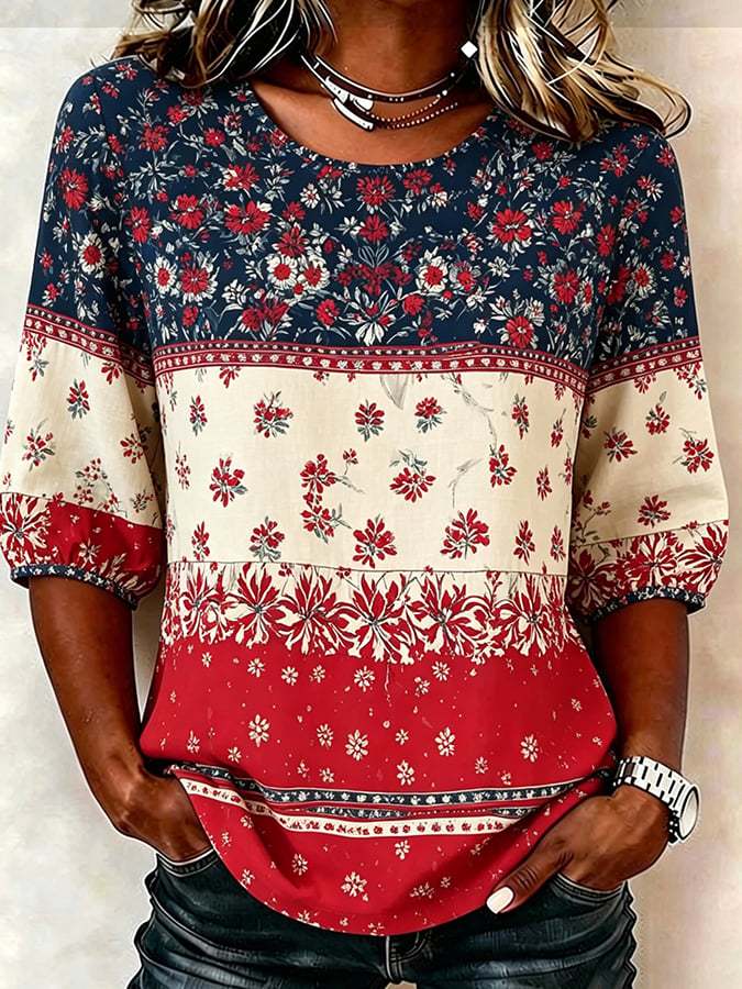 Women's Cotton-Linen Top With 250th Anniversary Botanical Floral Digital Print – lolonb