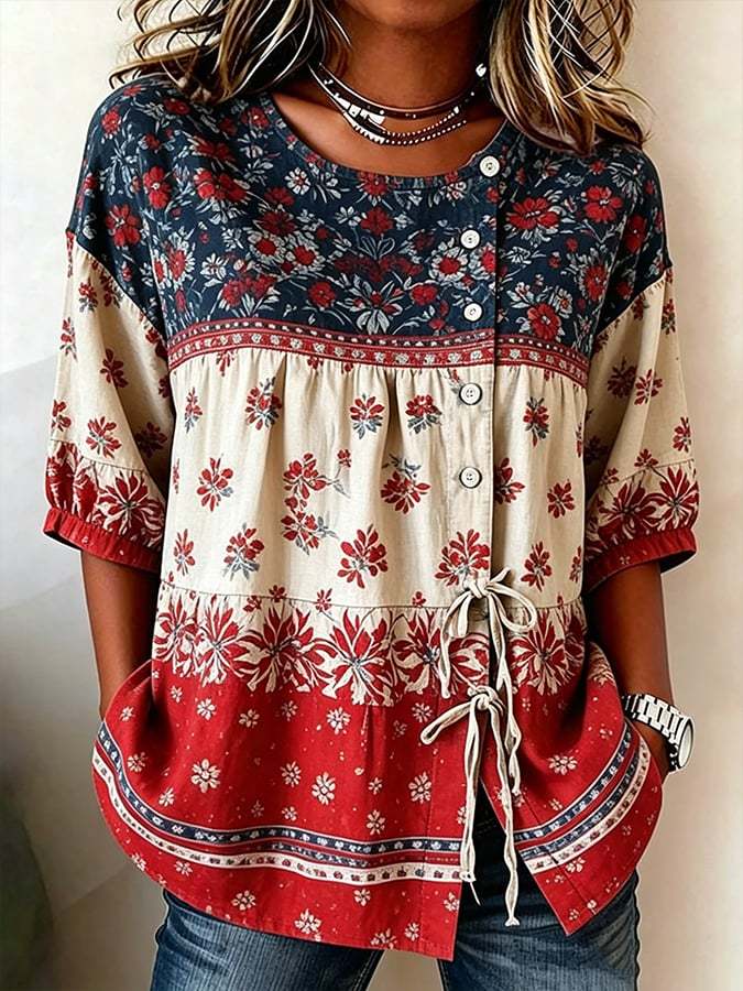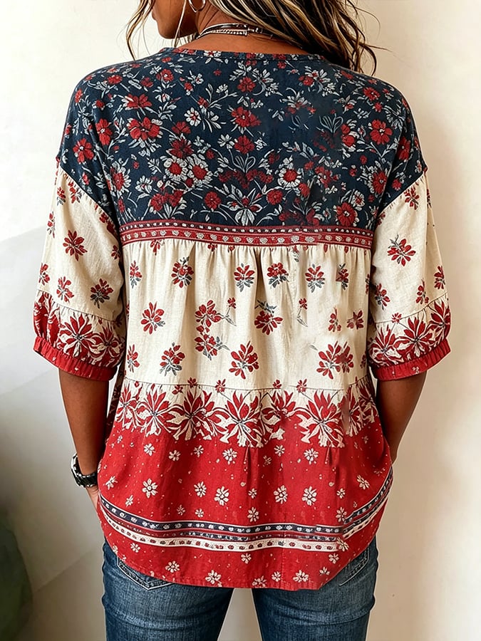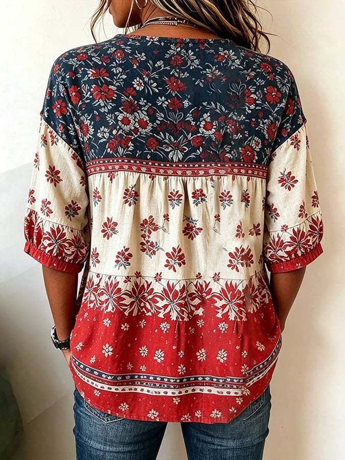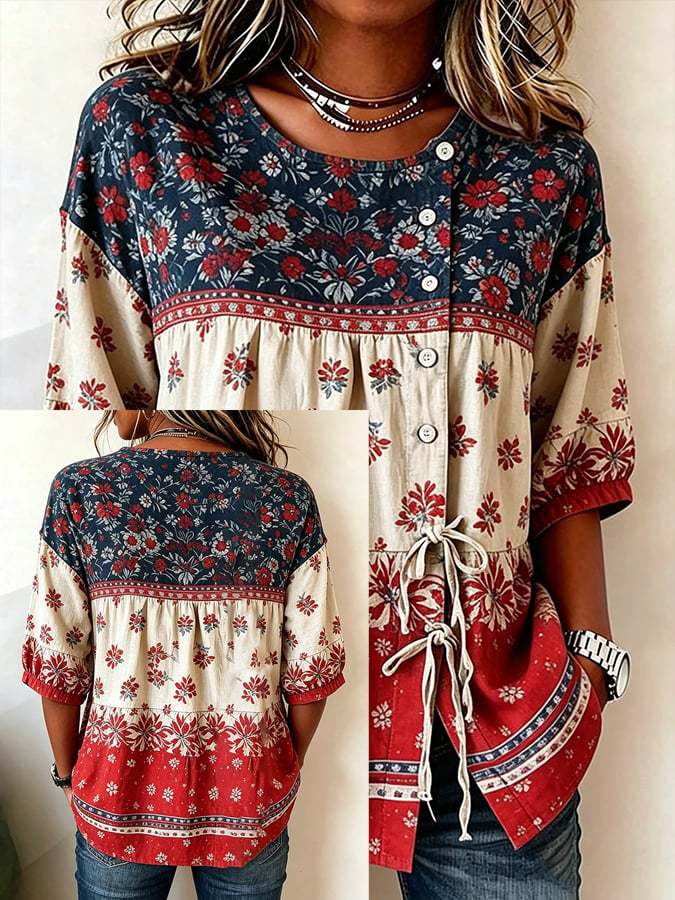 Women's Cotton-Linen Top With 250th Anniversary Botanical Floral Digital Print