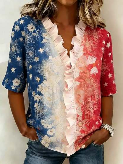 Women's Cotton-Linen Top With 250th Anniversary Botanical Floral Digital Print