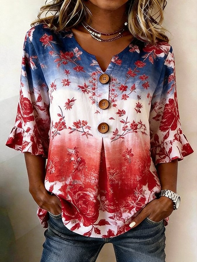 Women's Cotton-Linen Top With 250th Anniversary Botanical Floral Digital Print