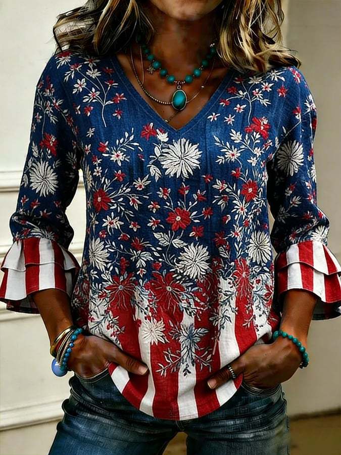 Women's Cotton-Linen Top With 250th Anniversary Botanical Floral Digital Print
