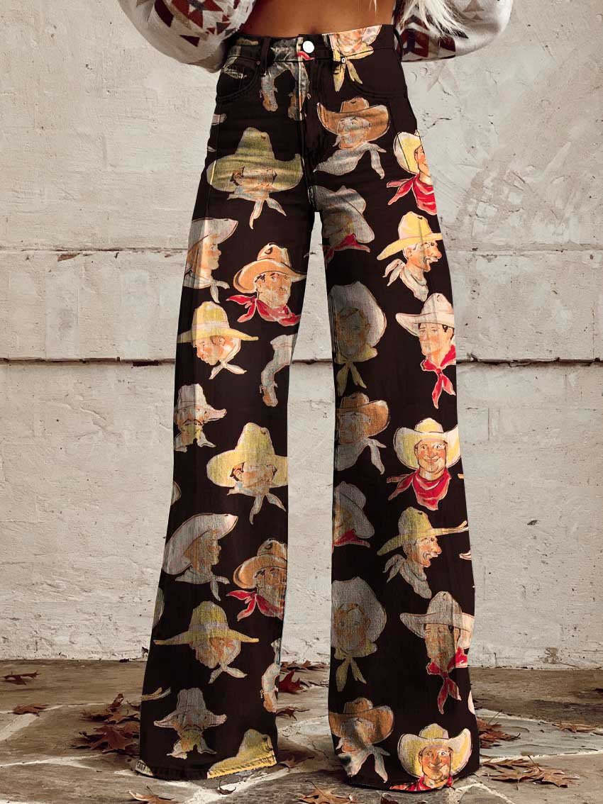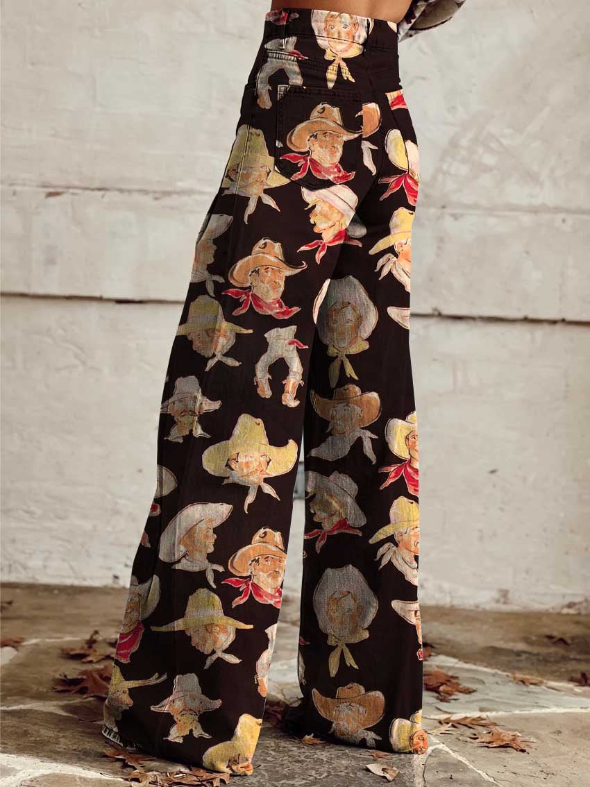 Women's Cowboy Race Print Casual Wide Leg Pants