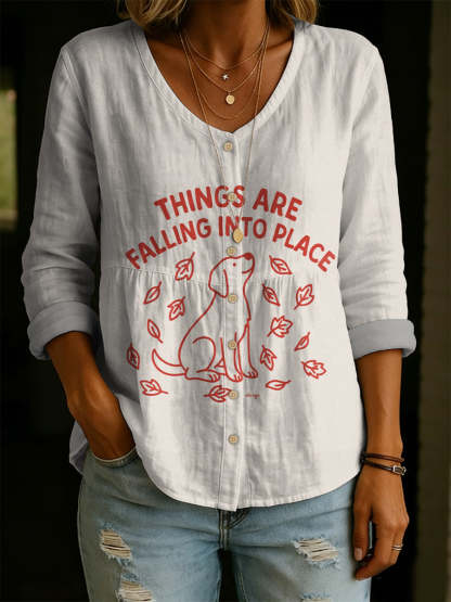Women's Cute Dog Decorative Patterns Linen And Cotton Shirt