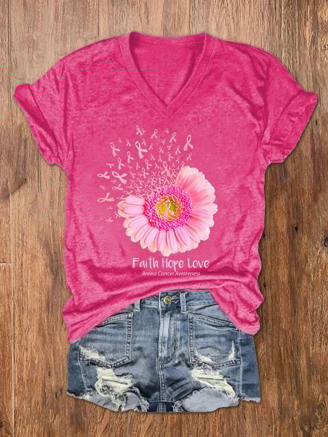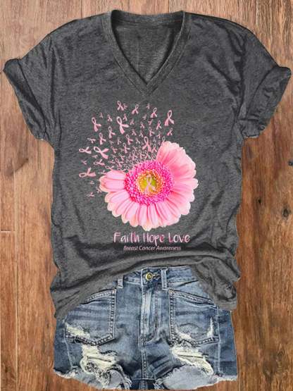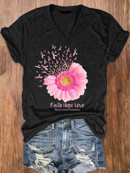 Women's Daisy Faith Hope Love Breast Cancer Awareness T-Shirt