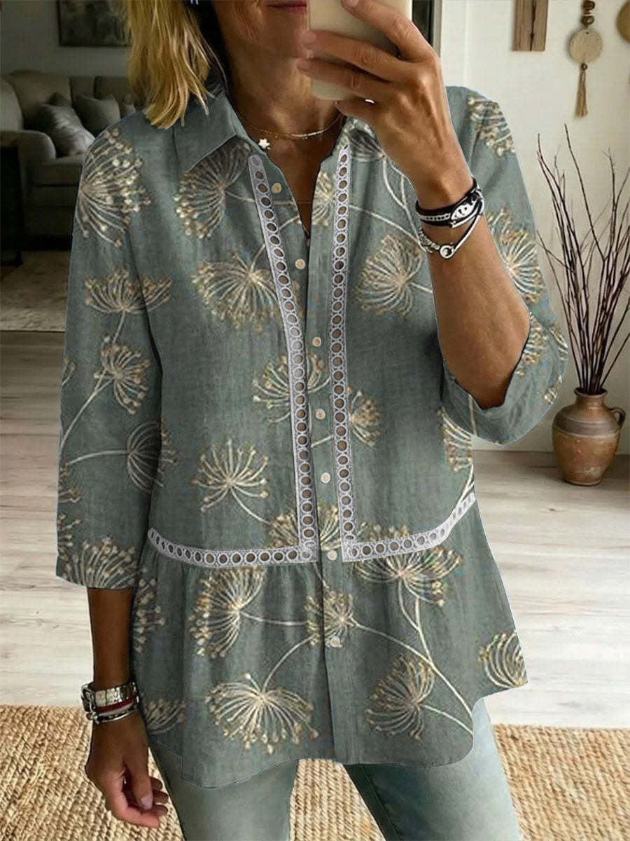 Women's Dandelion Art Print Casual Lapel Cotton Shirt
