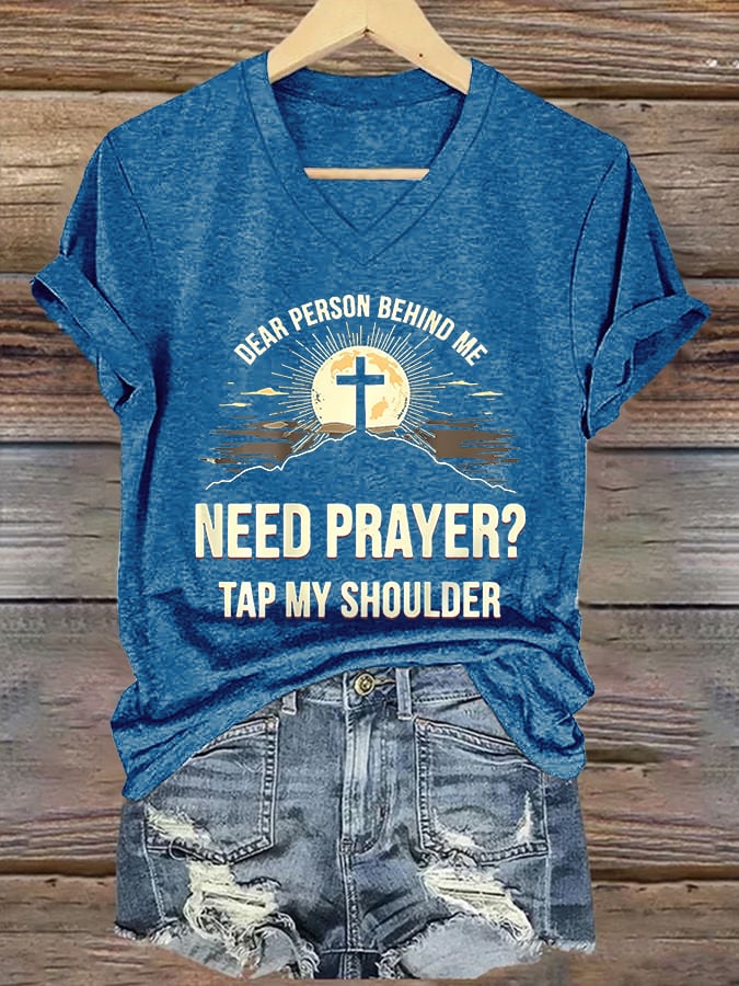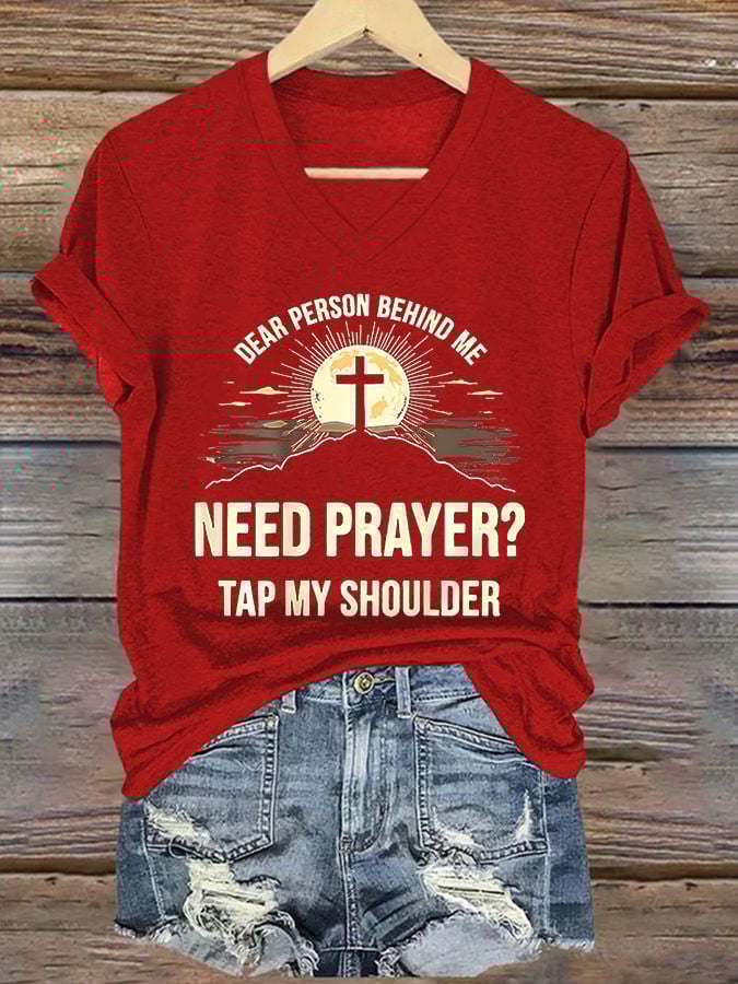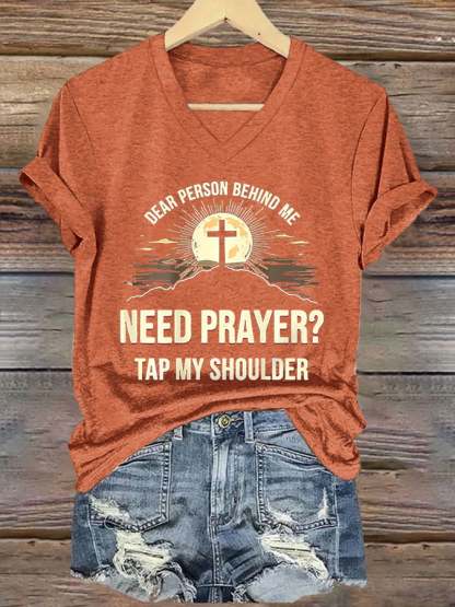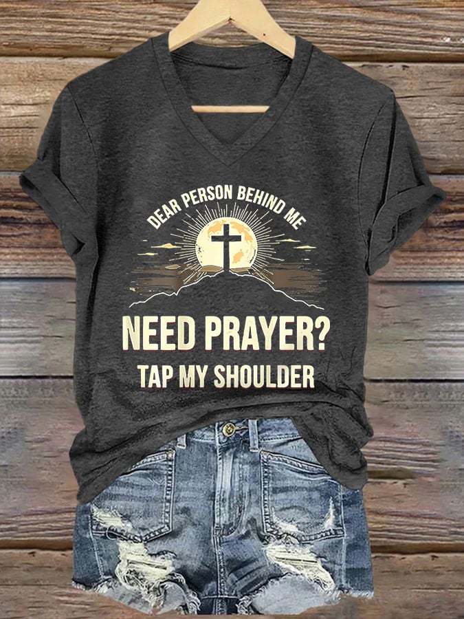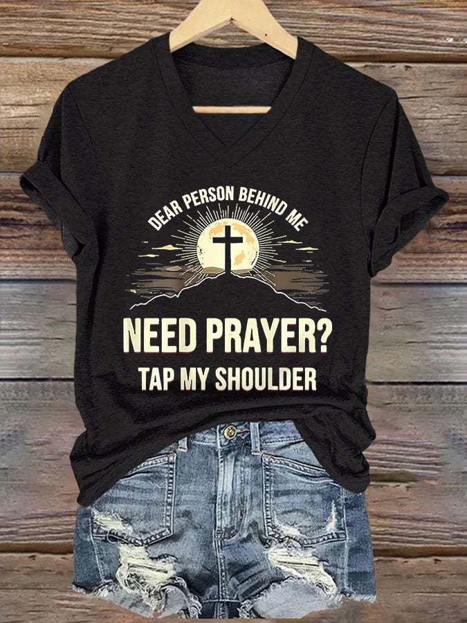 Women's Dear Person Behind Me Need Prayer Tap My Shoulder Print T-shirt