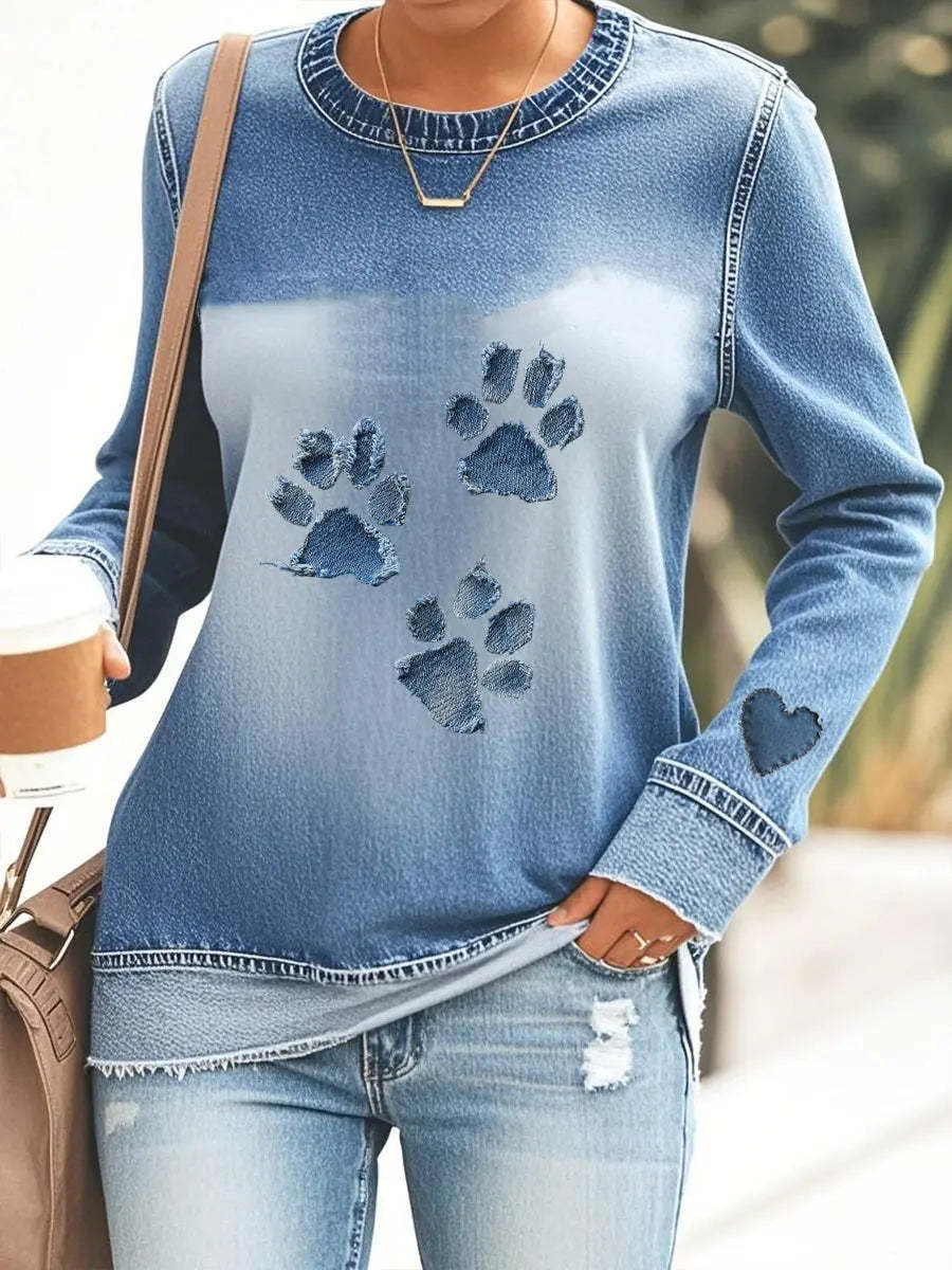 Women's denim paw sweatshirt