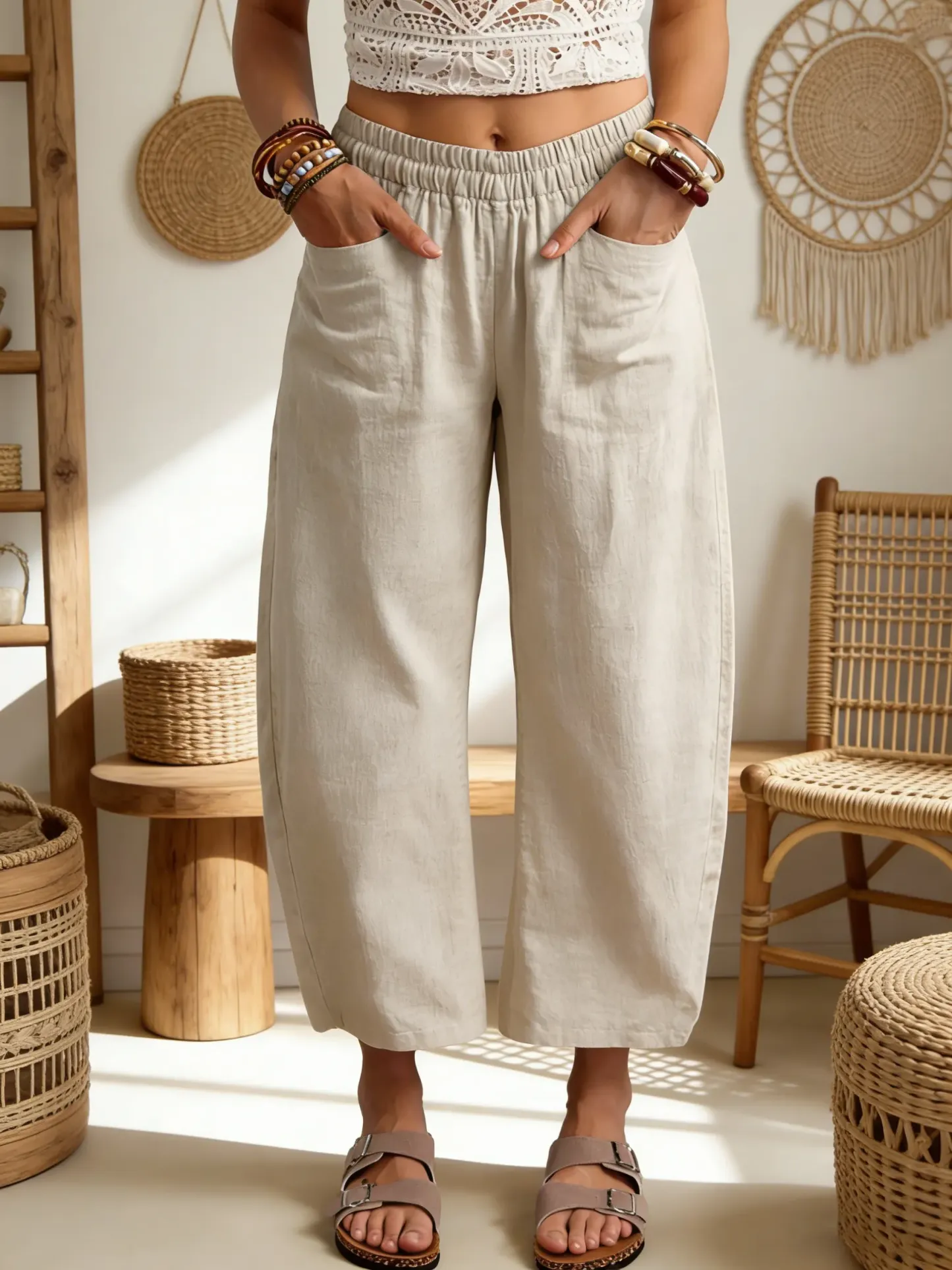 Women's Elastic Waist Pocket Cotton Pants