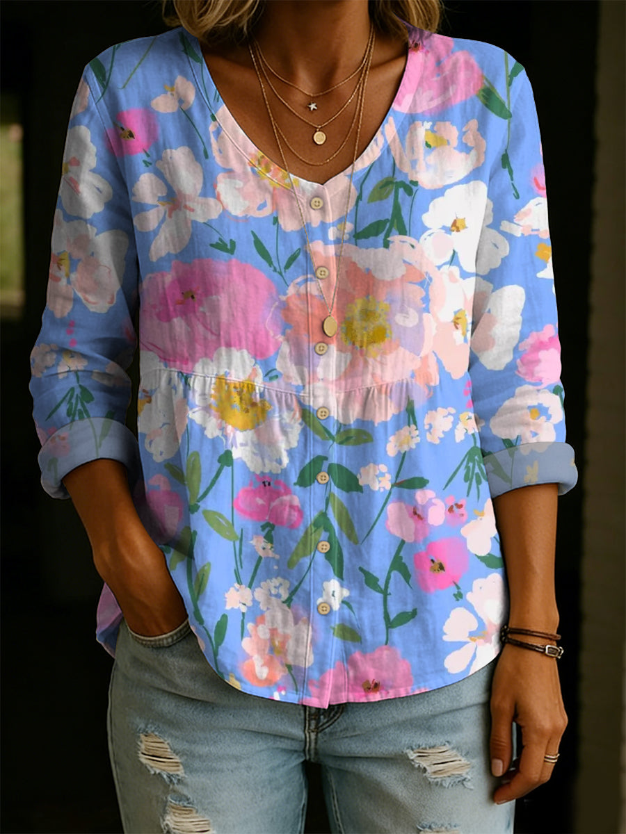 Women's Elegant Floral Decorative Pattern Linen And Cotton Shirt – lolonb