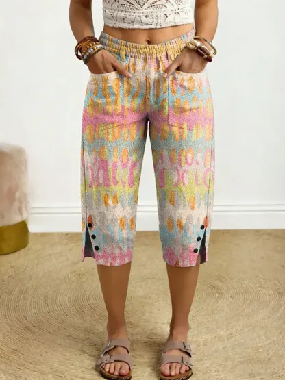 Women's Ethnic Art Print Elastic Waist Cotton Pocket Pants – lolonb