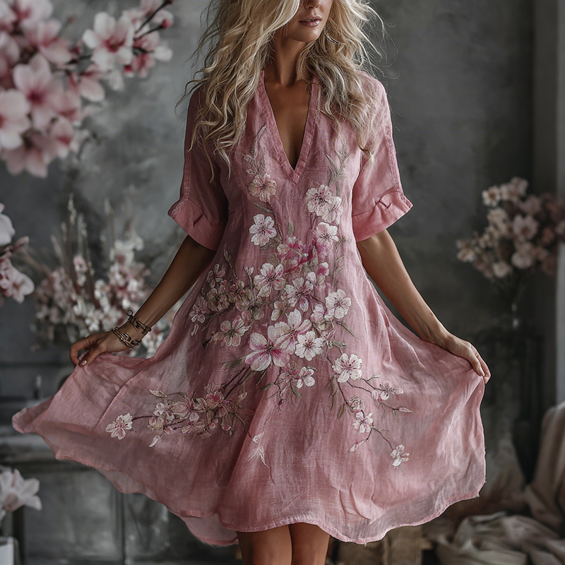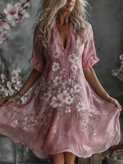 Women's Exquisite Embroidered Print Art Casual Linen Short Sleeved Dress – lolonb
