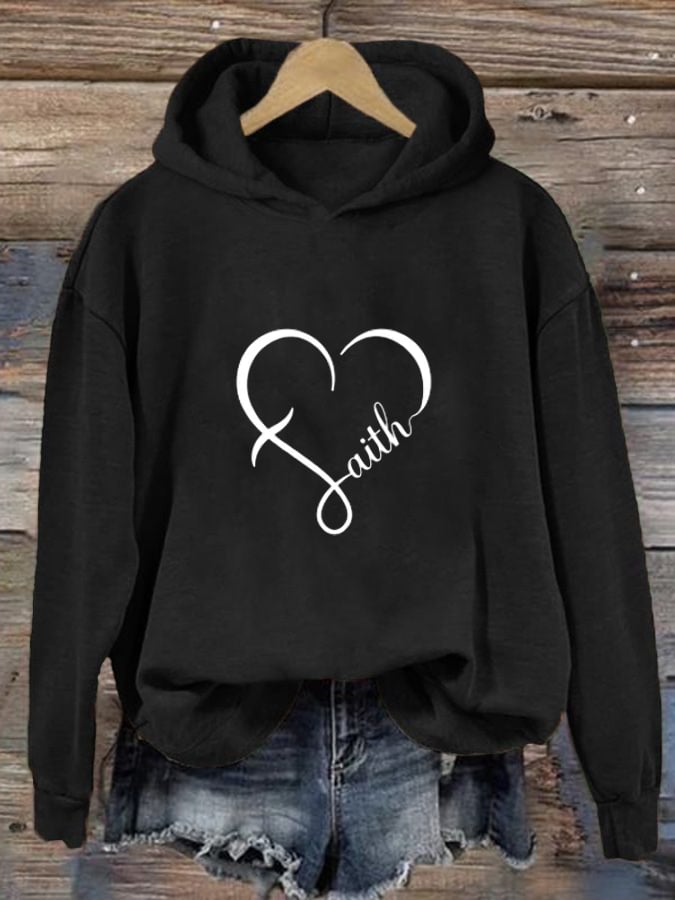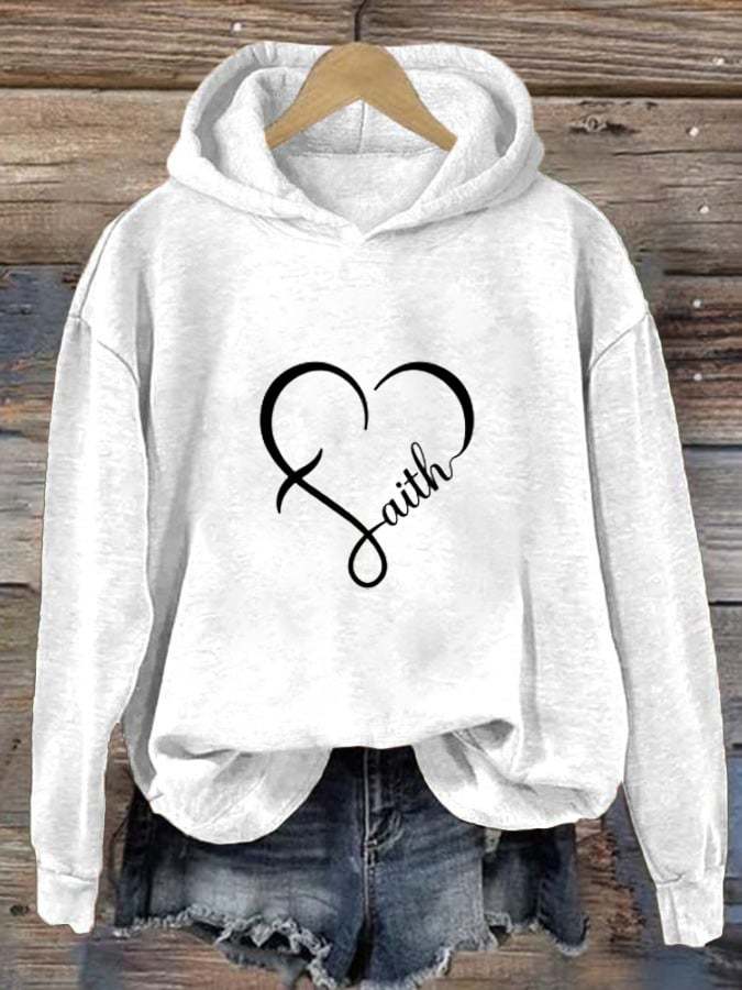 Women's Faith Cross Love Print Casual Round Neck Sweatshirt