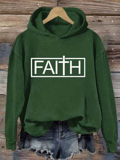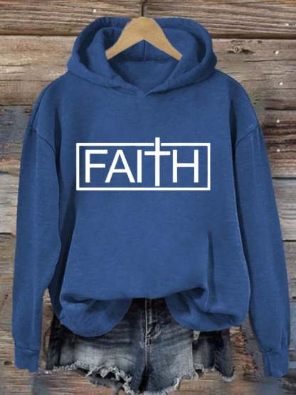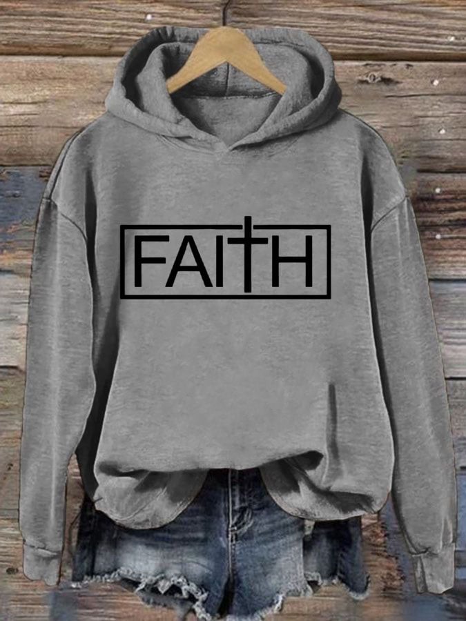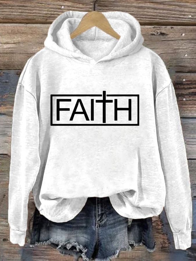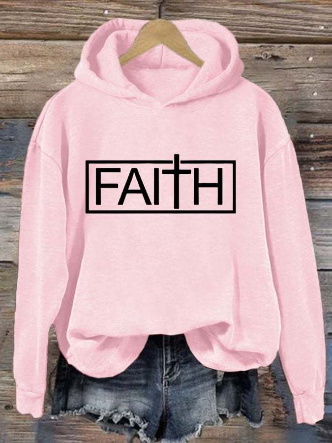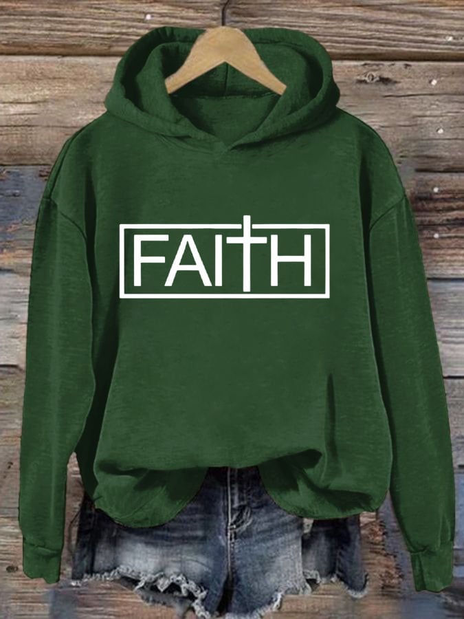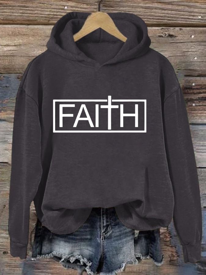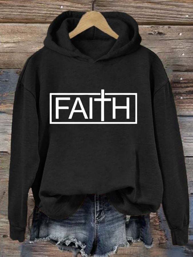 Women'S Faith Cross Printed Casual Hoodie