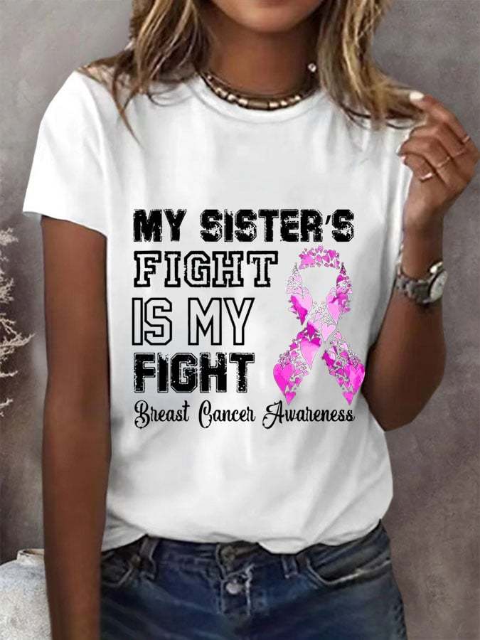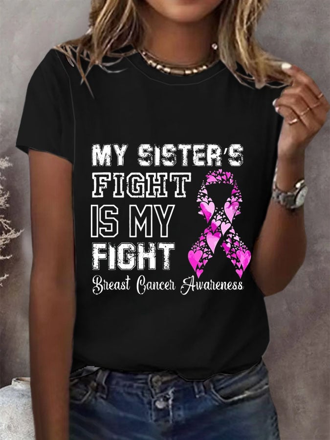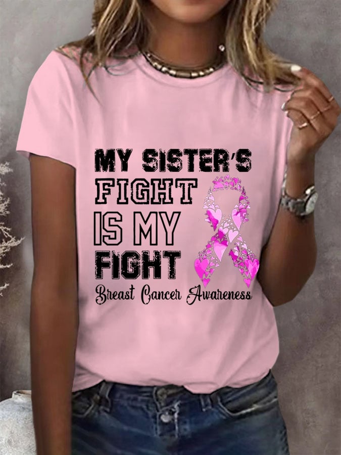 Women's Faith Hope Love Breast Cancer Print Casual T-Shirt