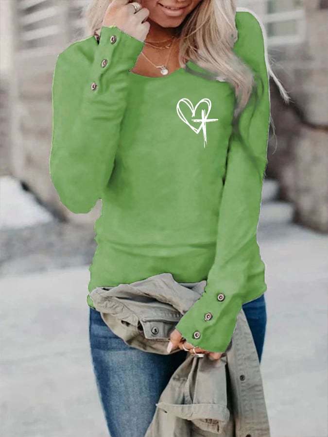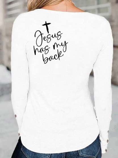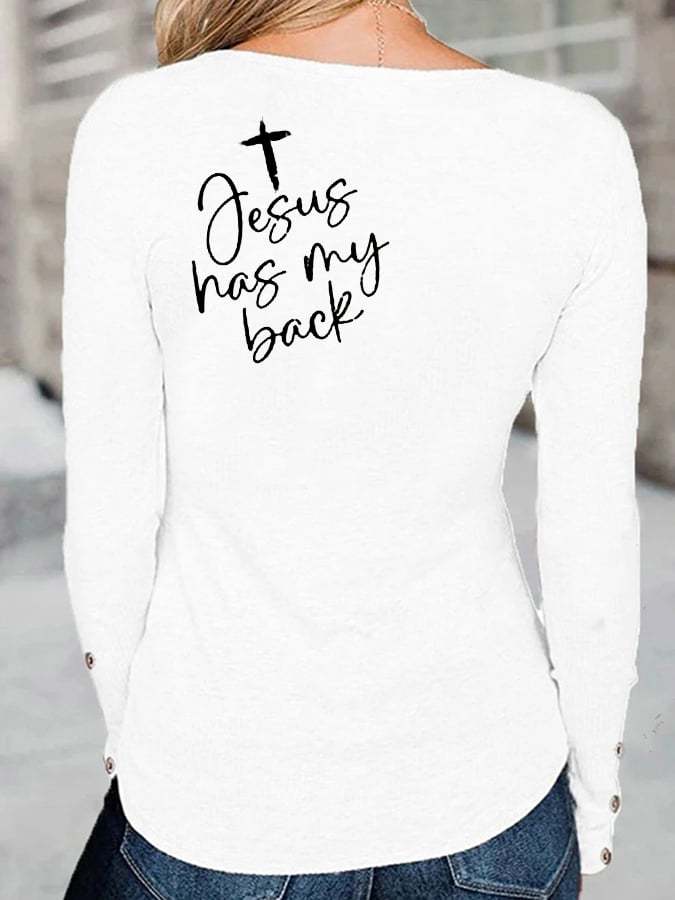 Women's Faith Love Like Jesus Jesus Has My Back Print Button Top