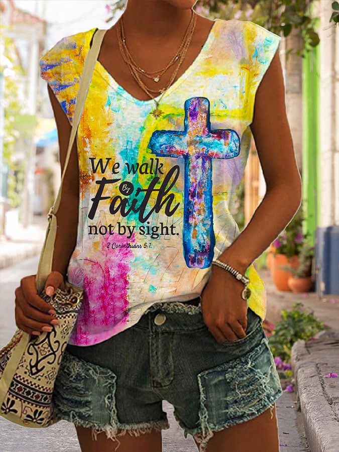 Women's Faith Oil Painting Cross Printed Vest