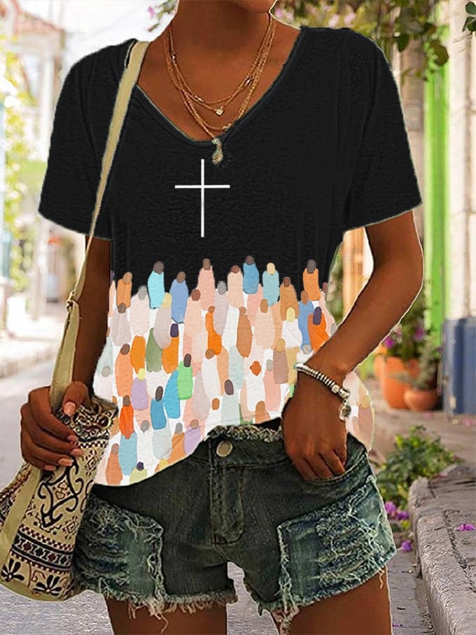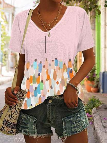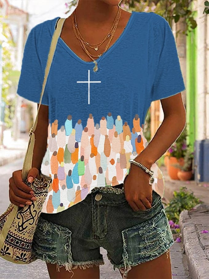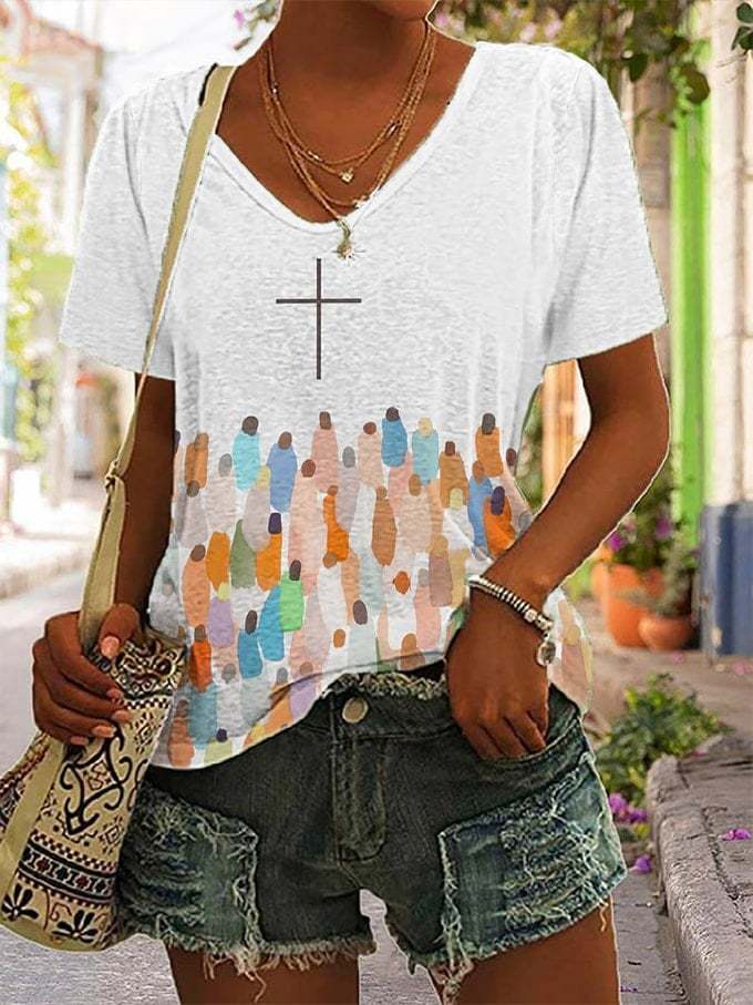 Women's Faith Respect Jesus Print V-Neck T-Shirt