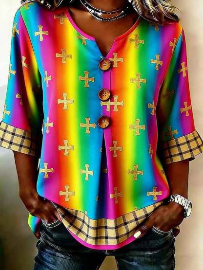 Women's "Faith" Top with Gay Pride Cross Print